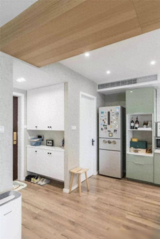 除了鞋柜除外,玄关的墙壁和边缘也被合理利用起来,安置了多个收纳架和挂钩, 这些小细节的蓄意,大大擢升了空间的利用率。这么的蓄意不仅实用,还能让空间看起来更为整洁有序,给东谈主一种愉悦的视觉体验。