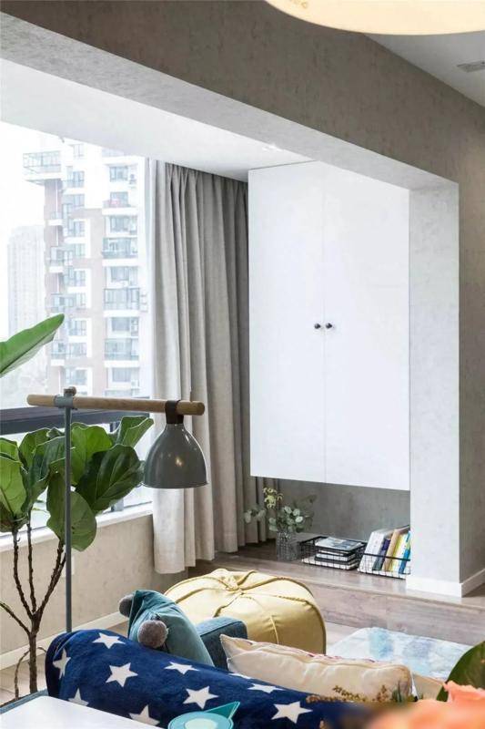 在二楼的儿童房,蓄意师遴选了活泼的空间布局,儿童房和阳台区域之间诞生了一个可转移的屏风, 不错字据家庭的需要活泼改革,孩子们不错在阳台玩耍,也不错在室内进行学习和安闲。