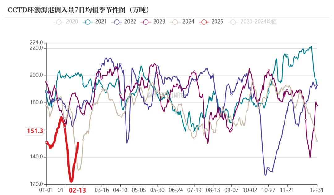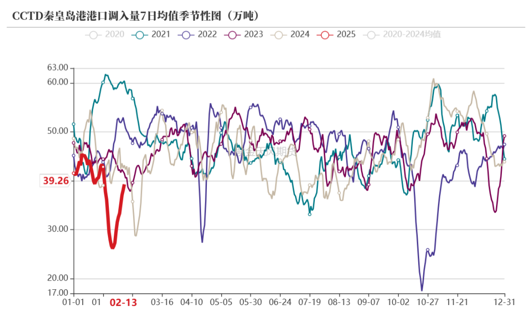 大秦线发运节后回升;口岸锚地船舶数目少,近期口岸库存快速累积。