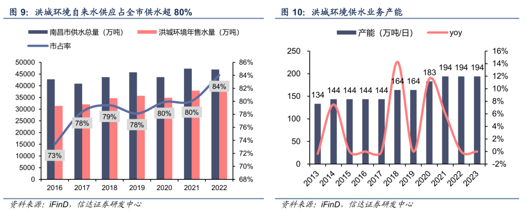 公司在南昌城区给水阛阓处于起头地位,现时产能保合手踏实。连年公司产能彭胀复古售水量稳步提高。给水产能由2013年134万吨/日增长到2023年194万吨/日,2017-2023年复合增速为5.2%。产能彭胀同期售水量加多,2017-2023年售水量复合增速为3.6%。公司现时一经褪色南昌市除南昌县和进贤县除外的扫数区域,2022年公司售水量占南昌市全年总给水量的84%。咱们瞻望,改日公司给水产能趋于踏实,售水量或将跟随南昌市东谈主口加多而呈现当然增长,为公司孝敬踏实现款流入。