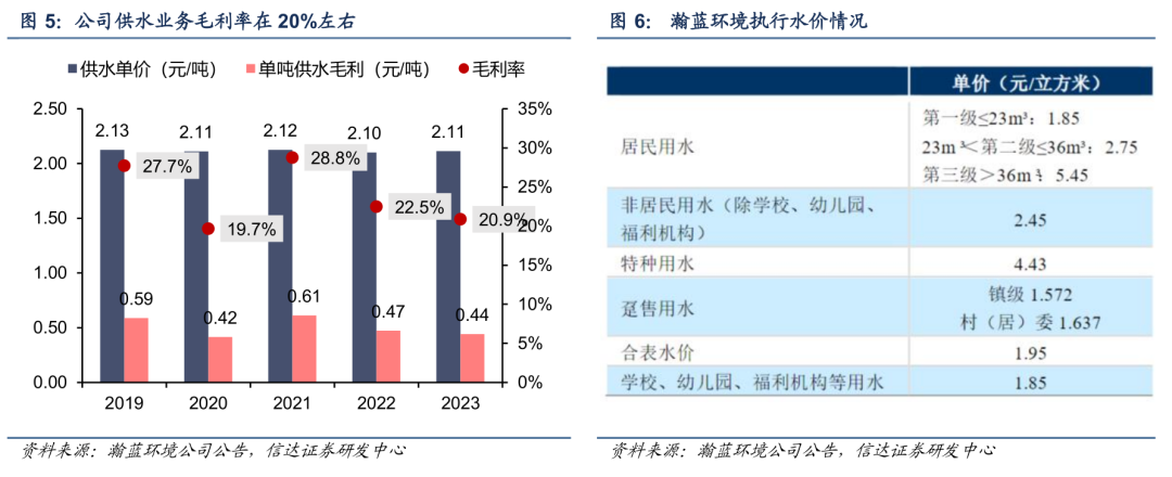 佛山市南海区水价9年未颐养,由于给水成本上升,板块毛利率呈下跌趋势。现时瀚蓝环境引申水价依据 2016 年 2 月印发的《南海区颐养自来水价钱实施决策》中规矩的道路水价,于今一经有 9 年未颐养。2022 年受到灵验需求不足影响,南海区售水量及售水单价均有所下滑,但电费、药剂费、维修费等仍有高涨,因此毛利率略有下滑,2023 年公司给水业务毛利率下滑至 20%。